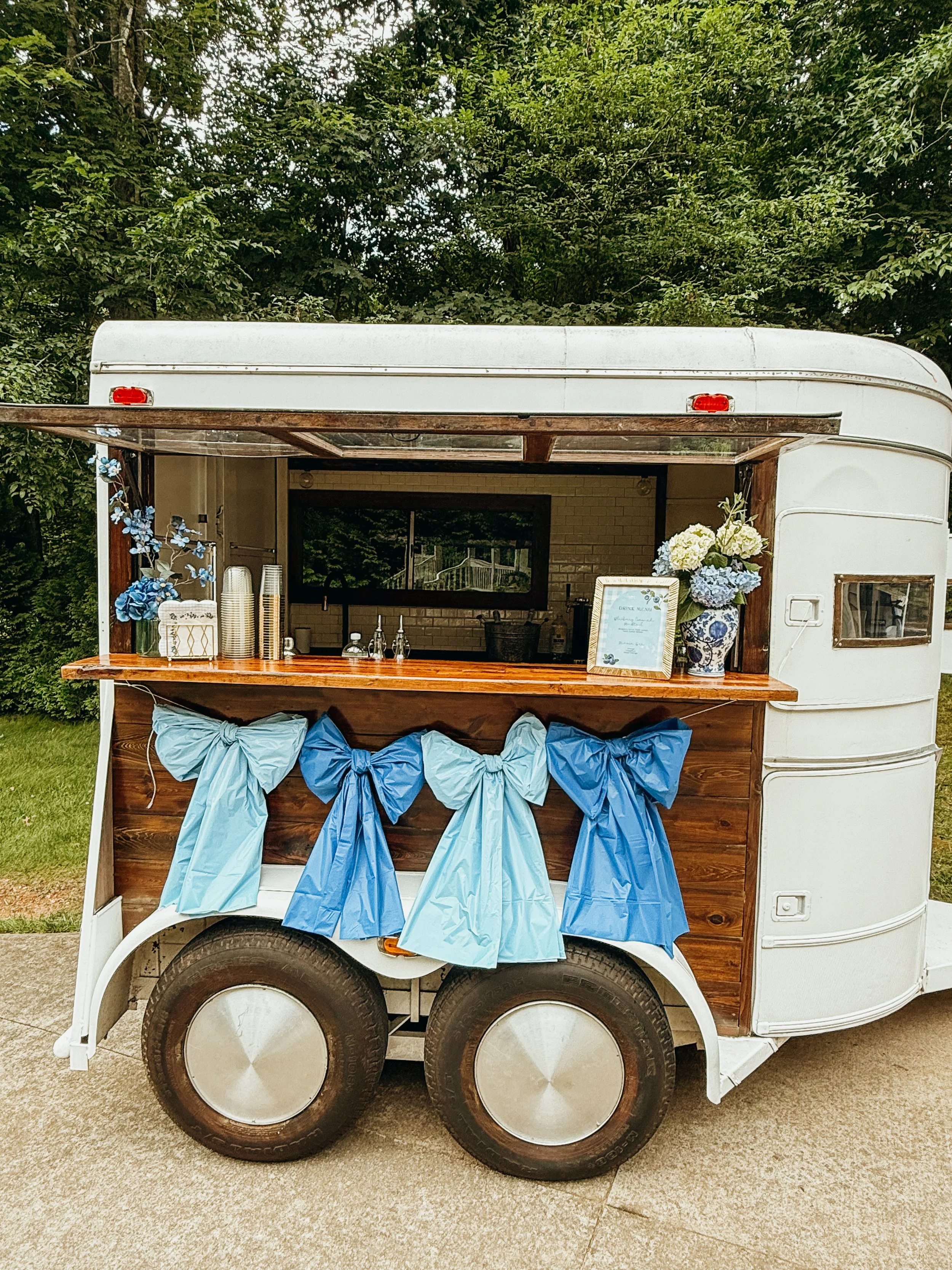 Ready to stir up some unforgettable memories? Meet our adorable horse trailer turned mobile bar — the perfect blend of rustic charm and modern vibes! Whether you're saying "I do," throwing a backyard bash, or hosting the cutest baby shower, our stylish bar-on-wheels rolls in with personality, top-notch bartenders, and all the good times.